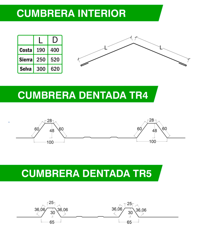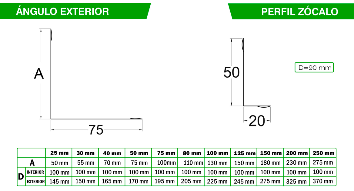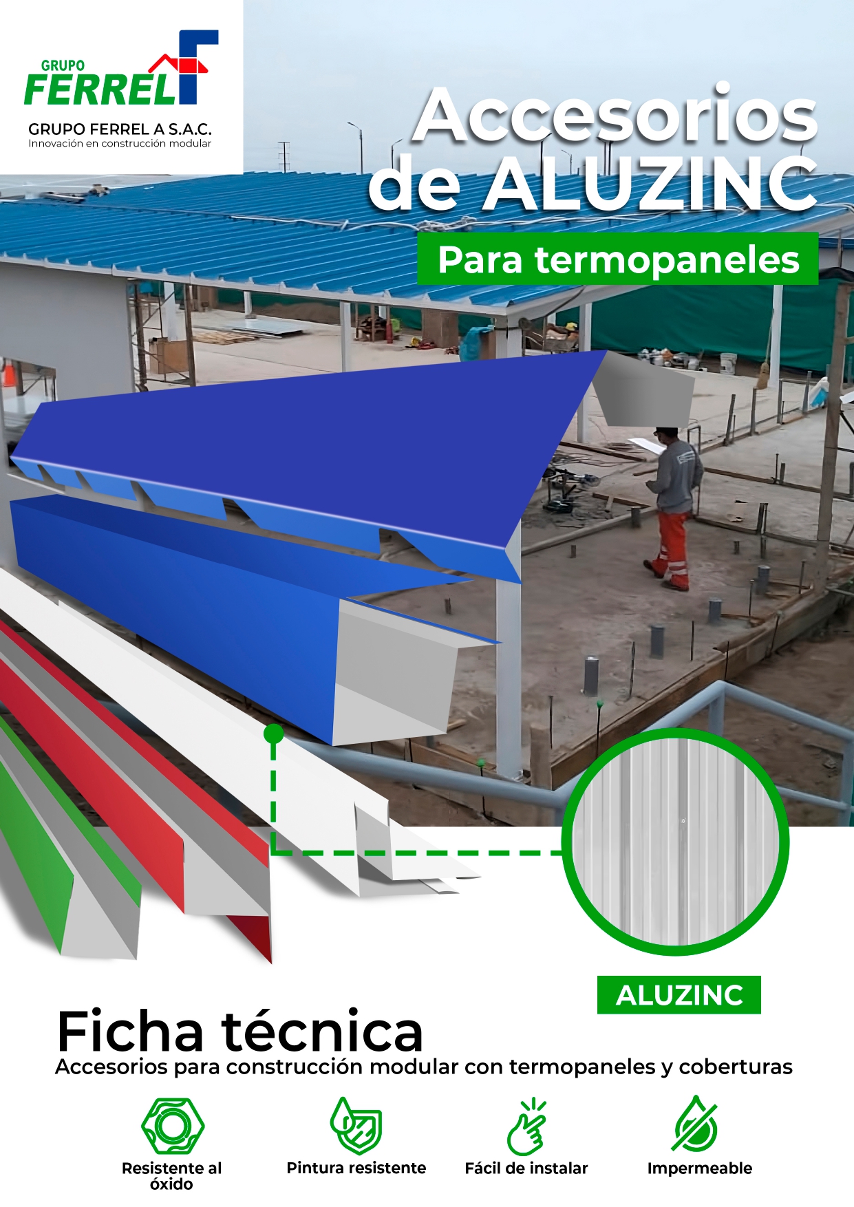 Son accesorios fabricados con el mismo material Aluzinc para el panel termoacústico con medidas de acuerdo al pedido de las medidas del cliente como de los anchos referenciales de los paneles. Fabricados a medidas estándar y medidas especiales de acuerdo a requerimiento del cliente.
