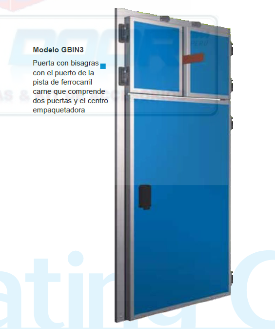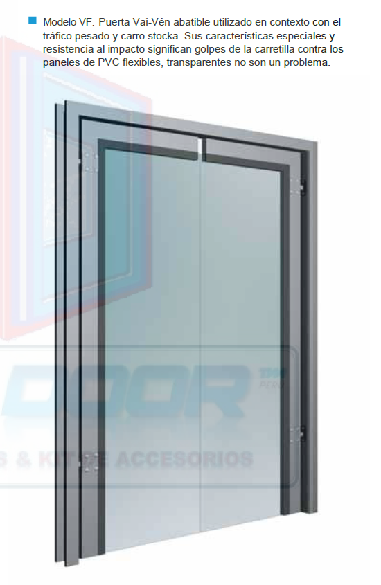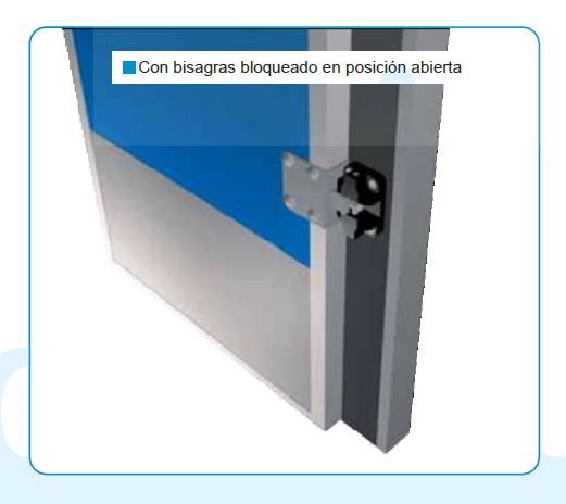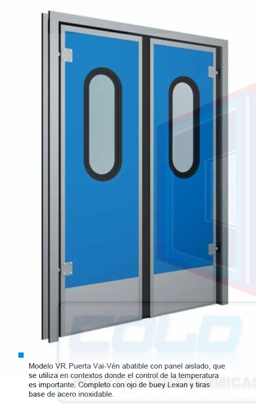 Puertas de la serie, diseñados para ser usados en Frigoríficos, están disponibles en versiones dobles e individuales. Abatibles en ambas direcciones gracias a bisagras especiales que le permiten una rotación de 180º con función de bloqueo en la posición de abierta. Puertas de la serie V se pueden montar directamente e incluyen bisagras bloqueado en posición abierta.