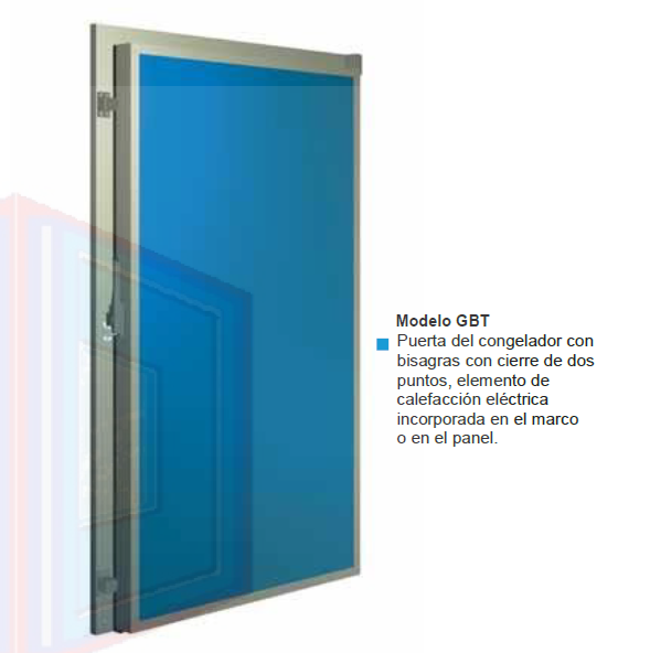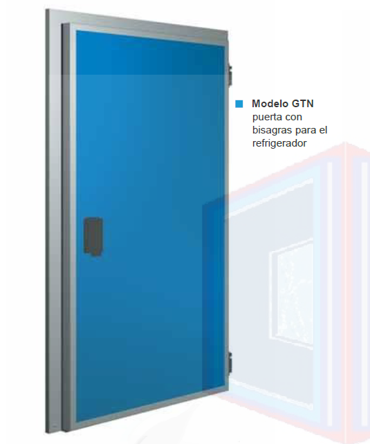 Puertas del cuarto frío con bisagras - hinged cold store doors G Series Puertas son la mejor solución simple para las pequeñas cámaras frigoríficas. Construida en torno a un marco de acero inoxidable resistente o PVC, con rotura de puente térmico, que se pueden producir en una variedad de tipos. La bisagra de diseño especial fuerza a la puerta a descender ya que está cerrado, la compresión de las juntas contra el bastidor y el suelo. mecanismos de bloqueo aseguran una función antipánico